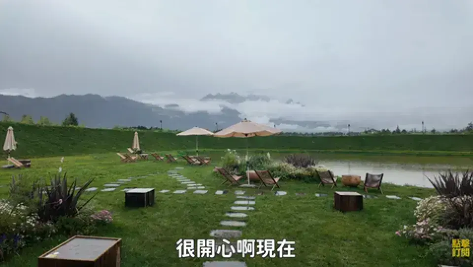 超美的格桑花海,整个空间像动画里的梦幻世界,有湖有小山坡小木屋 还有超大落地玻璃窗可以观景,可以看到玉龍雪山,拍照打卡好地方