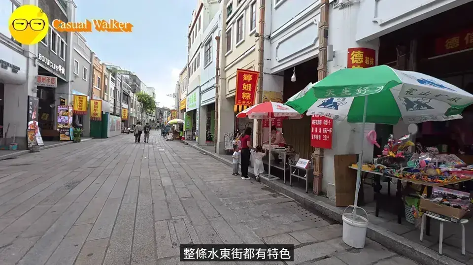 水東街的建築很有特色,都是嶺南風格的騎樓街,中西風格混合,街上有很多地道的小食店,晚上會更加熱鬧,附近有合江樓,可以在這裏看到兩條江合而為一的景色,傳說蘇東坡在這裏住過