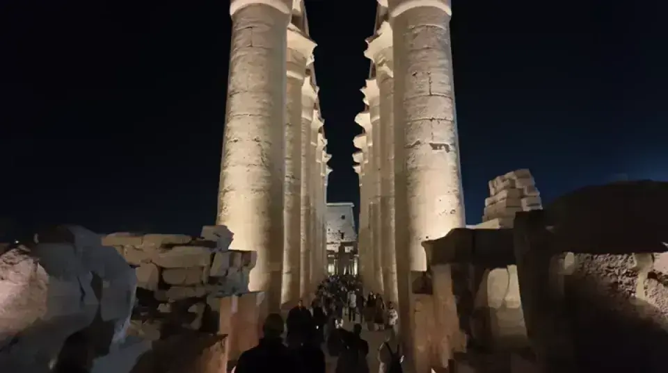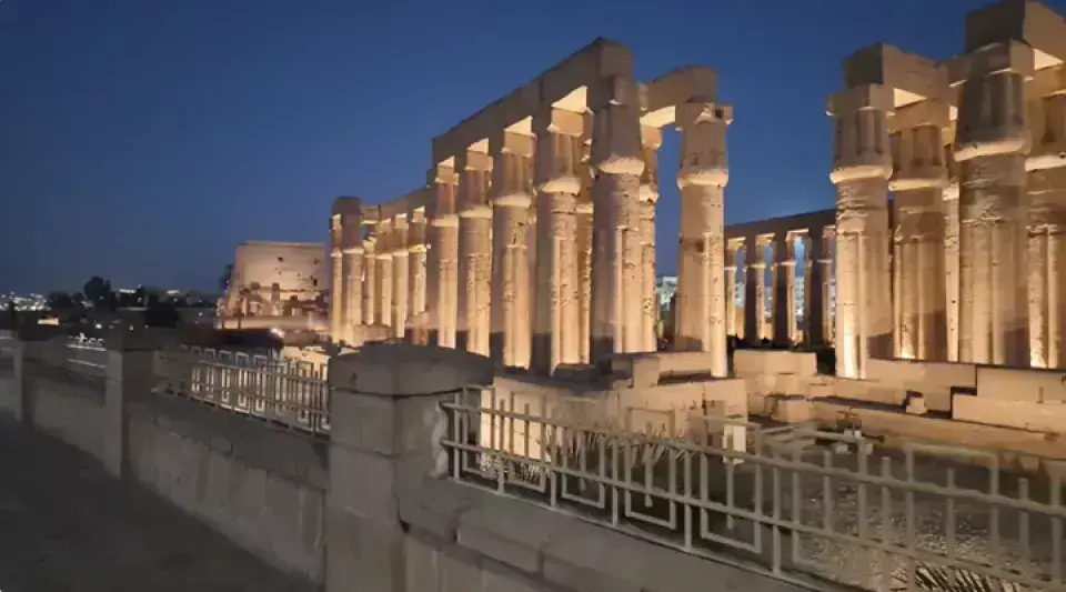 盧克索神廟(Luxor Temple)位於埃及盧克索市中心,尼羅河東岸,是古埃及新王國時期(約公元前1539年至公元前1075年)的重要宗教建築,三千多年前的古埃及建築,建造於公元前14世紀。這座神廟主要獻給太陽神阿蒙(Amun)、他的妻子穆特(Mut)和他們的兒子孔蘇(Khonsu)。它以巨大的柱廊、雕像和精美浮雕著稱,與附近的卡納克神廟(Karnak Temple)通過一條斯芬克斯大道相連,展現了古埃及的宗教與建築輝煌。