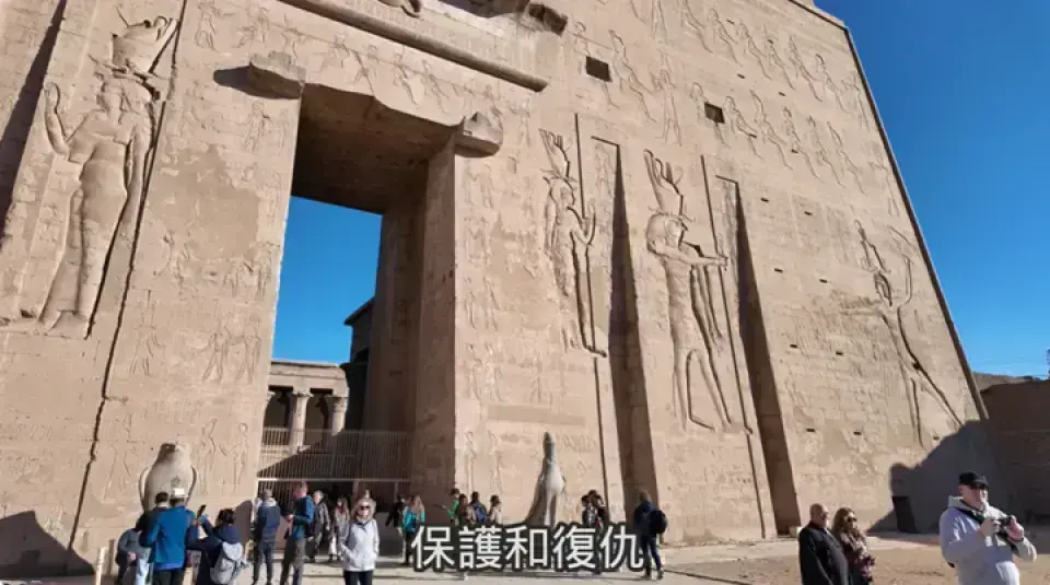 埃德富神廟(Edfu Temple)位於埃及埃德富市,尼羅河西岸,是托勒密時期(公元前237年至公元前57年)建造的古埃及神廟,獻給鷹神荷魯斯(Horus),在古埃及神話中代表正義、保護和復仇。這座神廟以其保存完好的狀態聞名,擁有巨大的塔門、柱廳和精緻的浮雕,展示了托勒密時代的建築與宗教藝術。它是埃及最完整的神廟之一,反映了古埃及晚期的文化與信仰。神廟裡的壁雕顯示了荷魯斯與冥神塞特之間的鬥爭,象徵著正義戰勝了邪惡的永恆主題。