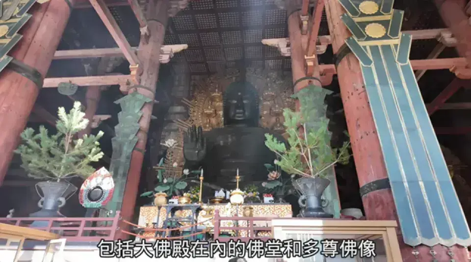 • 大佛殿:寺院中心建築,高約 49 公尺,世界最大木造建築之一,供奉全高 15 公尺的青銅盧舍那大佛。