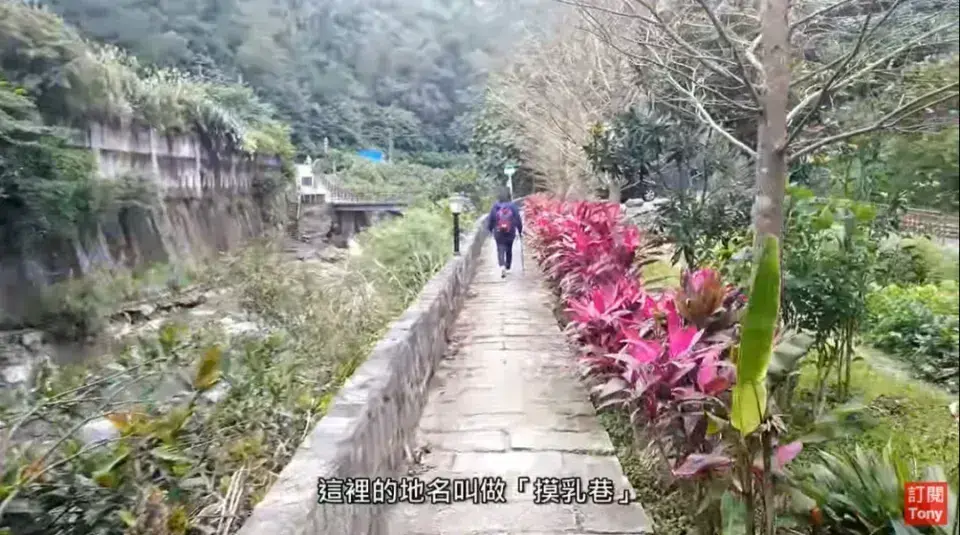 北47公路打通之前,這附近的烏塗溪緊迫山壁,有一小段山徑非常狹窄,走時不小心就會跌落溪水,而山壁剛好有兩棵突出的石塊,宛如石乳。農夫挑運農產品經過這裏時,都必須一隻手扶著偏擔,另一隻手抓著石乳,保持平衡,避免失足跌落溪谷,所以這處狹窄山壁小徑,被戲稱為摸乳巷,而成為當地地名。