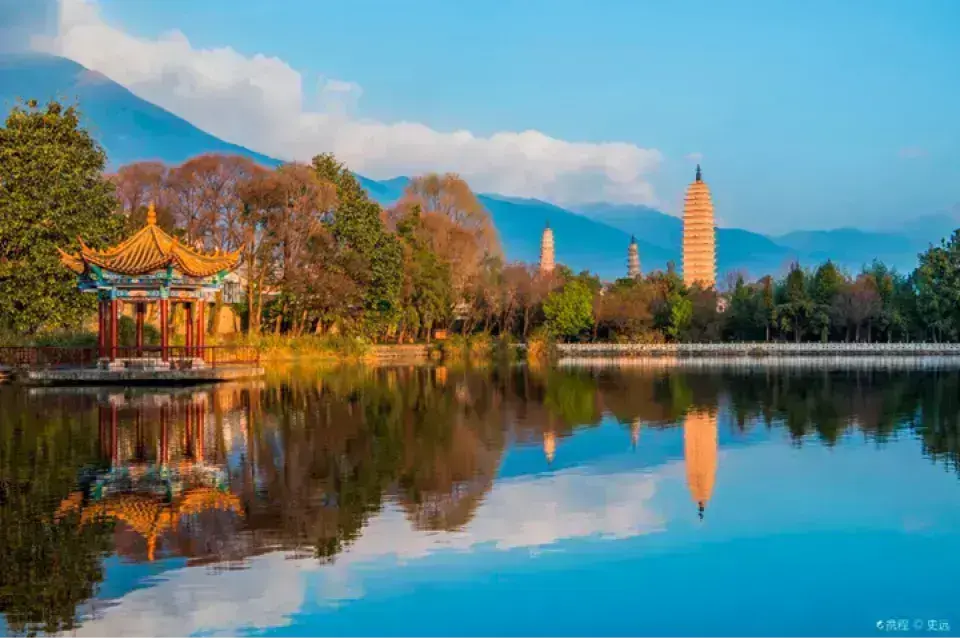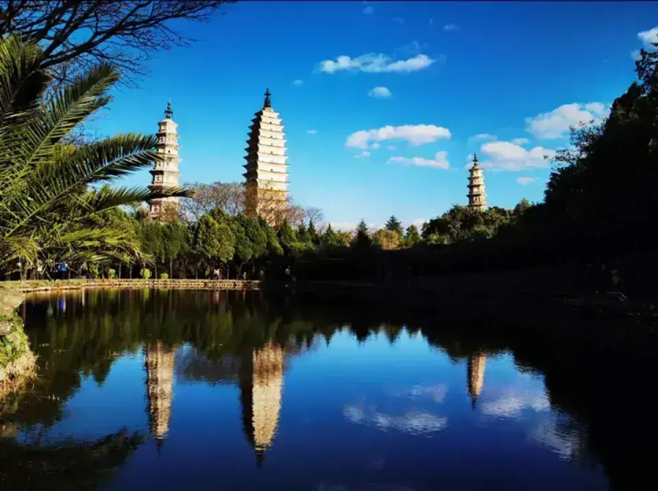 雲南大理崇聖寺,也是金庸先生天龍八部裏的天龍寺,有三座塔,中間那座塔叫千尋塔,只見於唐代的南詔國時期,兩側的小塔建於宋朝時期的大理國,這個崇聖寺是宋代大理國的皇家寺院,背靠蒼山,面朝洱海。