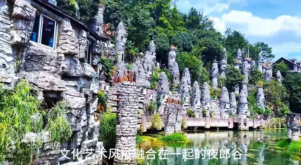 花溪夜郎谷位于贵安新区花溪大学城斗篷山脚的小峡谷里,与之相对的斗篷山相传曾是夜郎王后继金竹司的住所。时至今日,山顶仍保留着古夜郎屯堡的遗址,夜郎谷也因此得名。夜郎谷内的石头建筑、陶艺、雕塑等特色建筑,神秘而又充满了浓郁的艺术气息,值得一观。