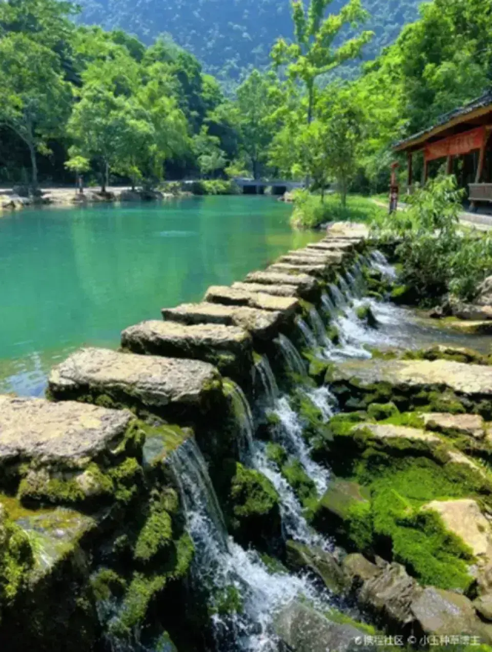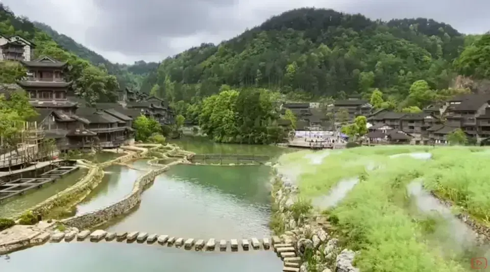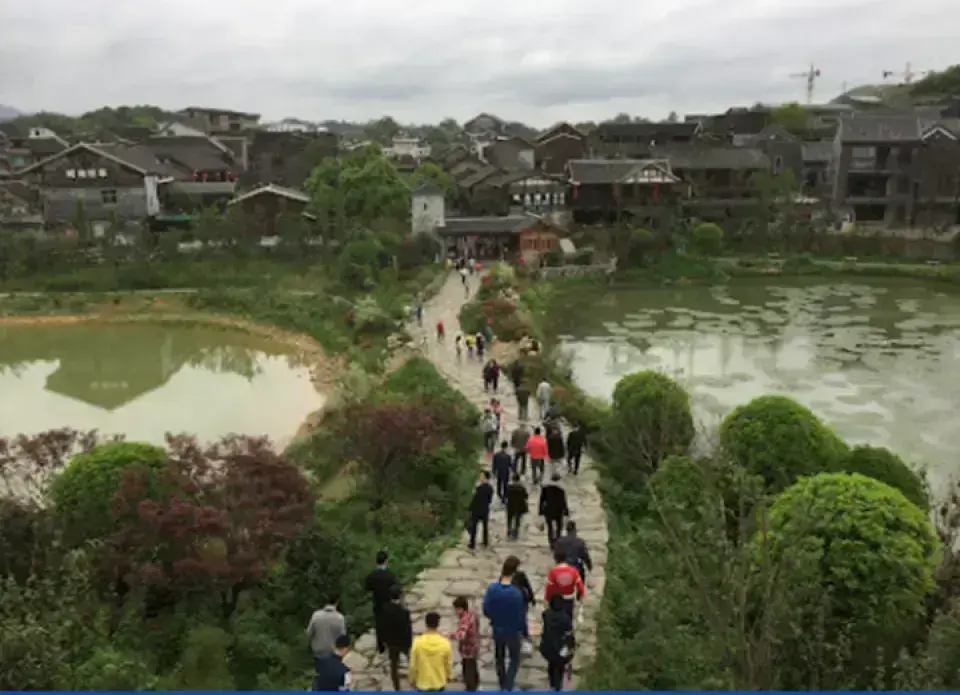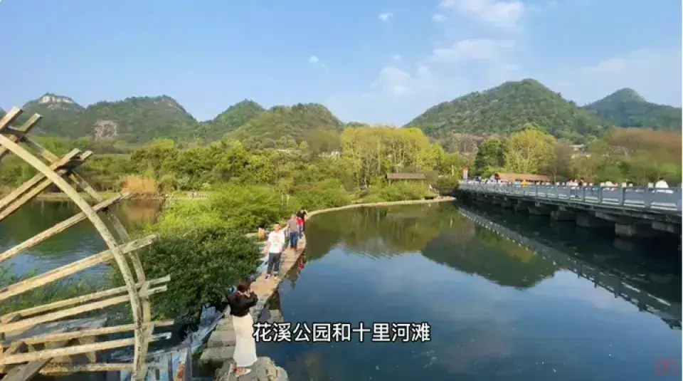 | 百步橋 | 由130多個石墩組成,橫跨花溪河,遊客需踏石而過,體驗獨特的過橋方式。 牛頓 |
