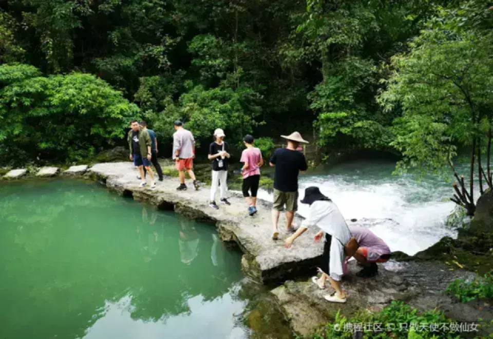茂兰自然保护区区内分布着许多景点,以地质地貌为主。螃蟹沟是一个拍照的好地方,中间有一段小石墩桥,站在上面回头看镜头拍照是不错的选择。运气好的话你真的可以发现沟中的螃蟹。然后可以去青龙瀑感受壮观的瀑布,游客可以站在瀑布下体会湿身的感觉,比较刺激。