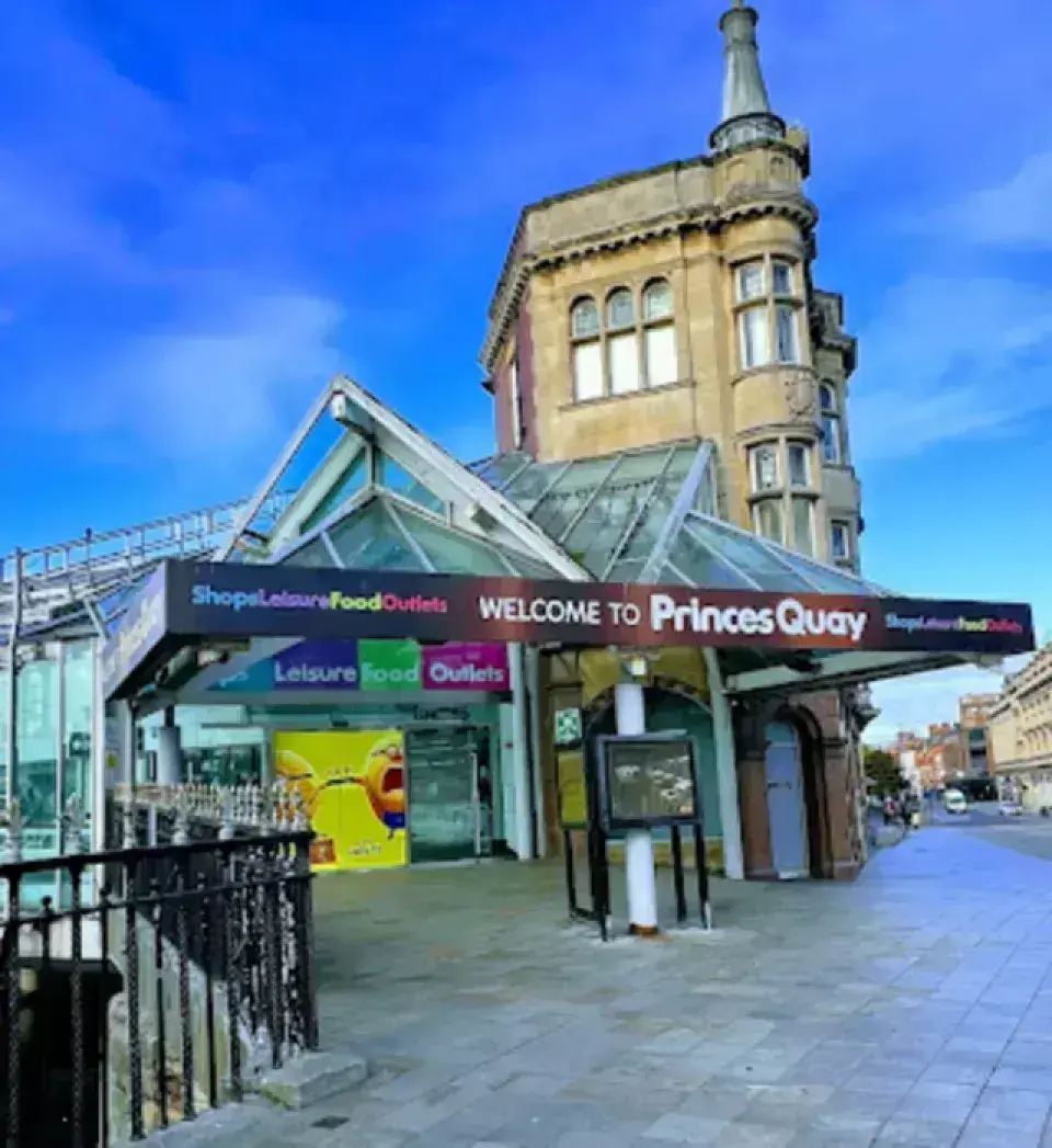 Princes Quay(昆士碼頭購物中心)位於英國赫爾市中心的購物中心,建於舊碼頭之上,具有獨特的水上設計。購物中心內有多層次的零售店,包括品牌專賣店、折扣店和娛樂設施,如電影院和遊樂場。Princes Quay 也是一個社交聚會場所,定期舉辦各類活動和展覽,為當地居民和遊客提供多樣化的購物和娛樂選擇。
