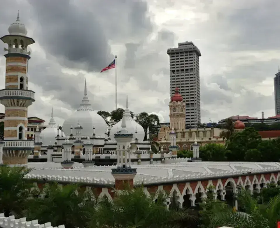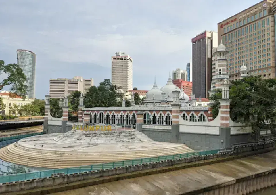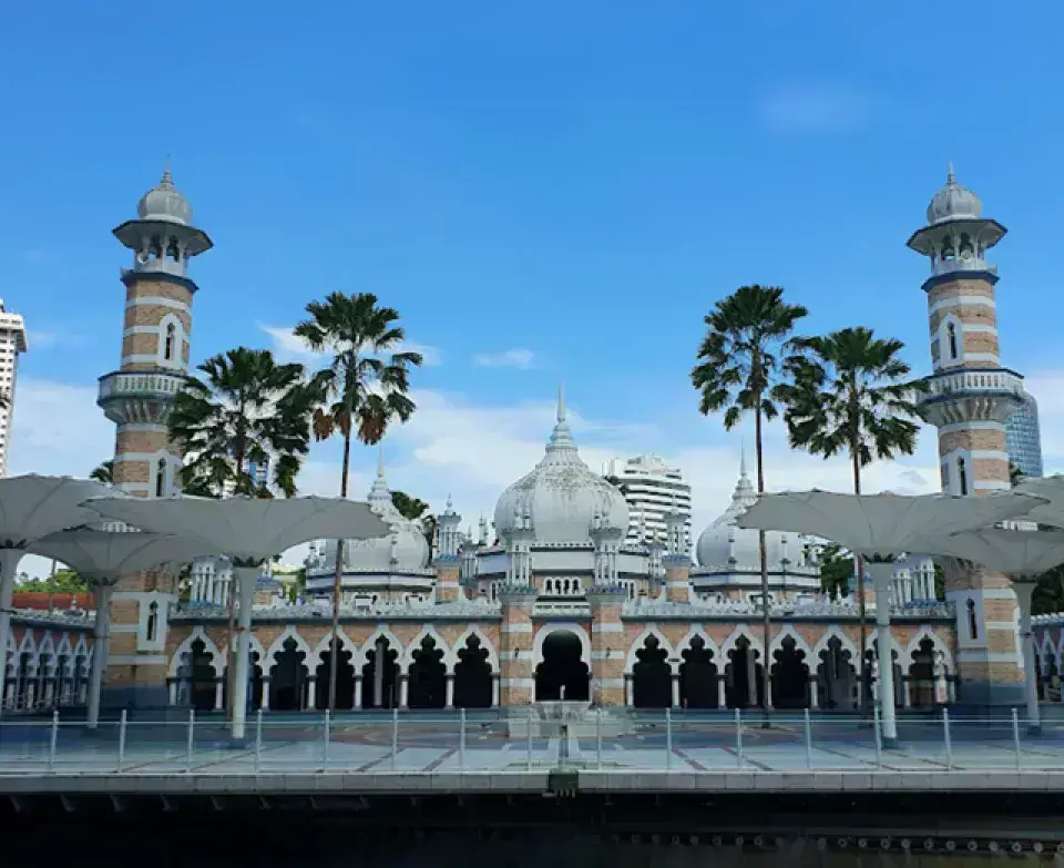 Sultan Abdul Samad Jamek Mosque = 吉隆坡最古老且最具標誌性的清真寺,融合摩爾式與印度-伊斯蘭建築風格,位於市中心河流交會處,是遊客必訪的人文景點之一。