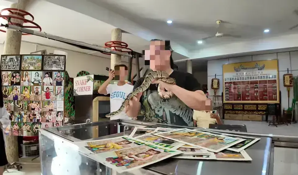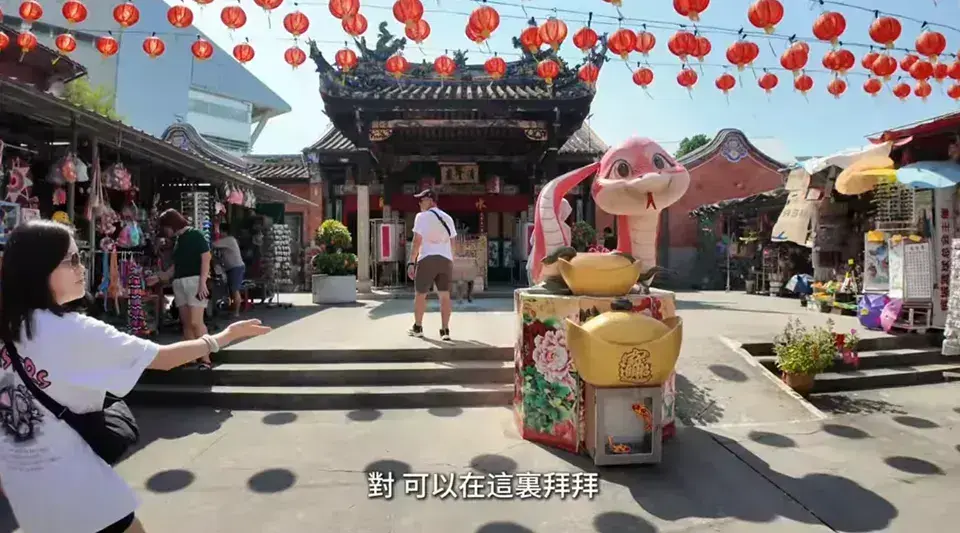 蛇廟結合了宗教信仰與文化傳說,是華人移民在檳城的重要廟宇之一。寺內不僅有供奉青水祖師的正殿,還有專門展示毒蛇的「蛇博物館」,能近距離觀察馬來亞毒蛇、巨蟒等。遊客可拍攝蛇盤踞在香案或佛像旁的特寫照,是熱門的打卡景點。有些遊客還會選擇與大蟒蛇合影(需支付小費),是充滿神秘色彩與宗教氛圍的景點。