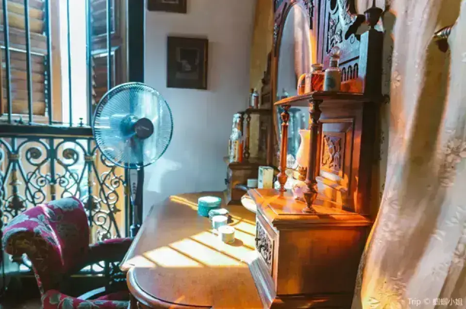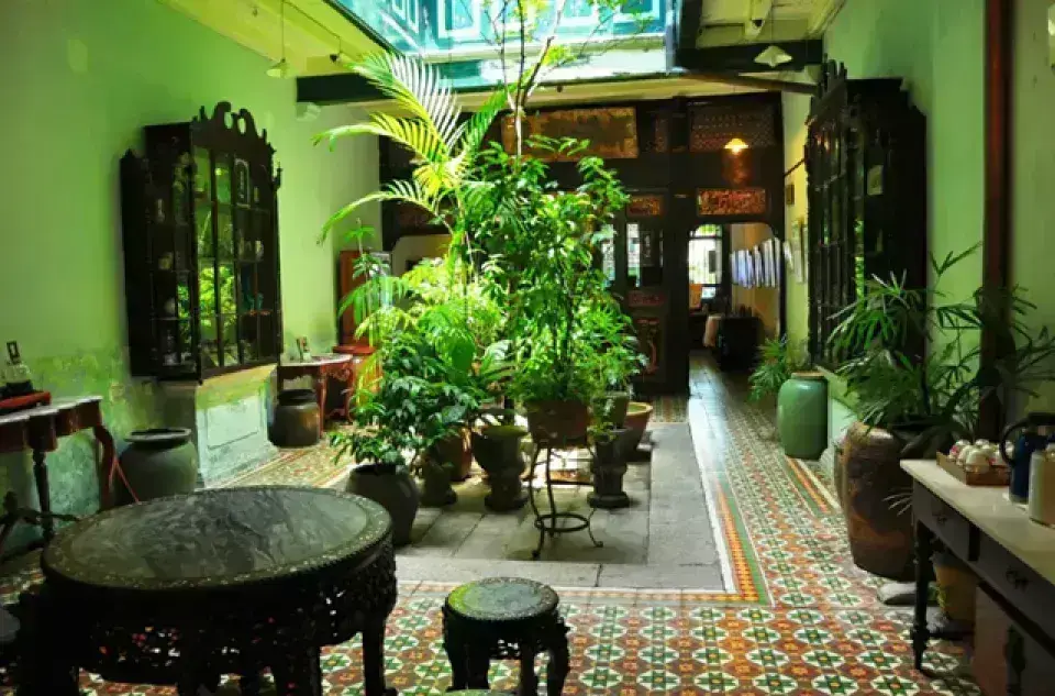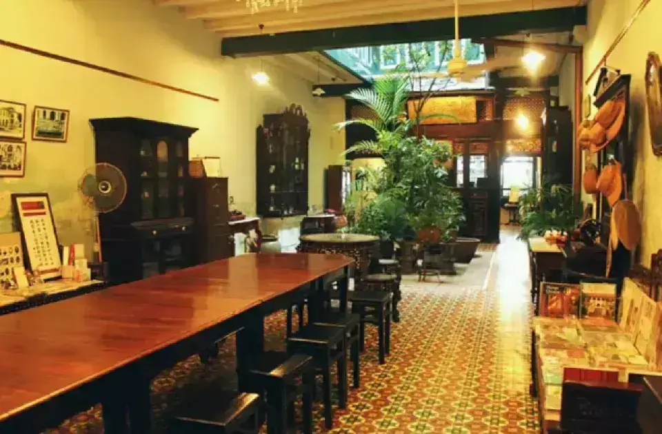 • 位於一棟傳統「中式騎樓屋 (shophouse)」建築內,結合紅磚、木窗與復古裝飾