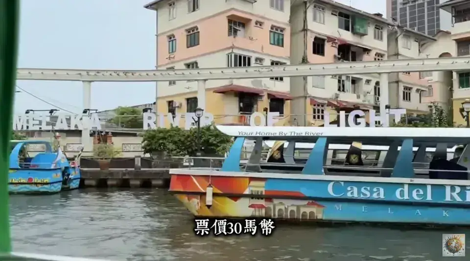 可搭乘遊船沿河觀光,欣賞兩岸的歷史建築、壁畫和夜景。沿著馬六甲河45分鐘的遊船之旅,可以欣賞歷史建築和壁畫,尤其是在夜晚,當城市的燈光倒映在水面上時,景色非常美麗 [28:50]。