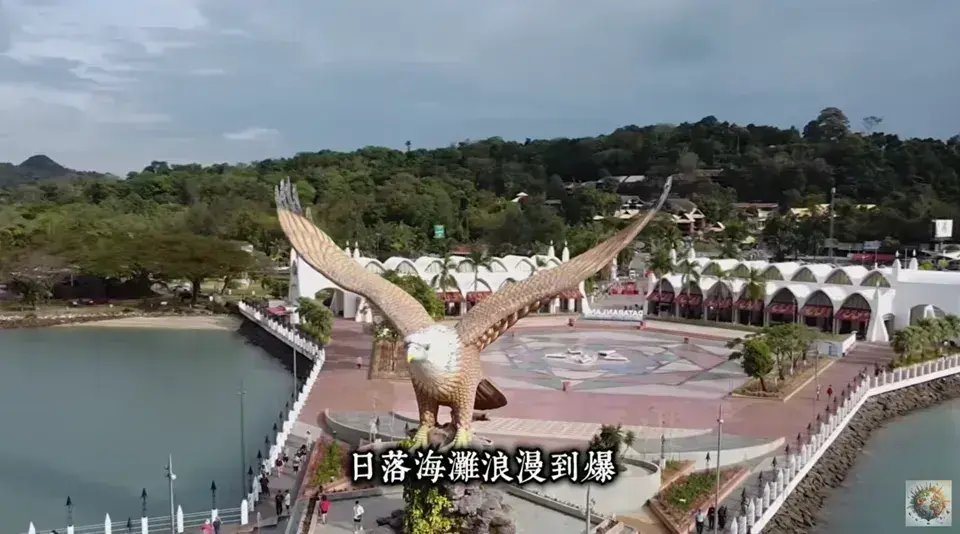 廣場上有一座巨大的老鷹雕像,象徵著蘭卡威的名字由來。巨鷹雕像高達12公尺,是蘭卡威的地標 [34:07]。