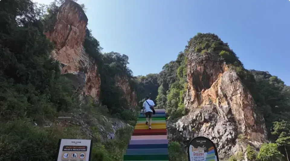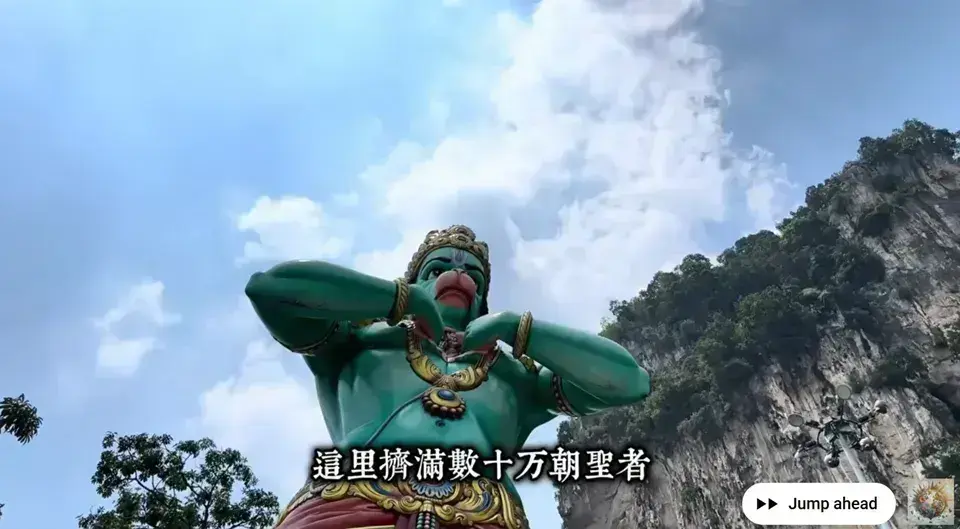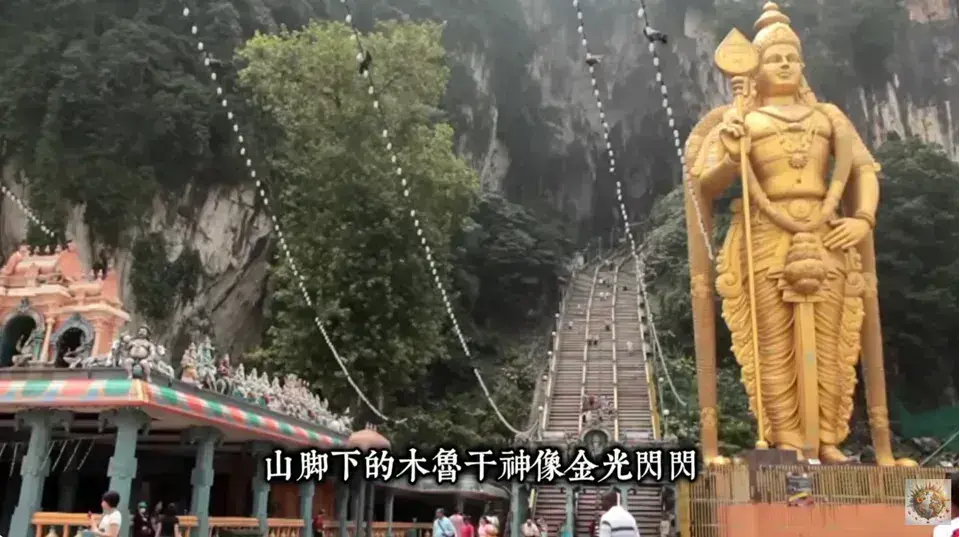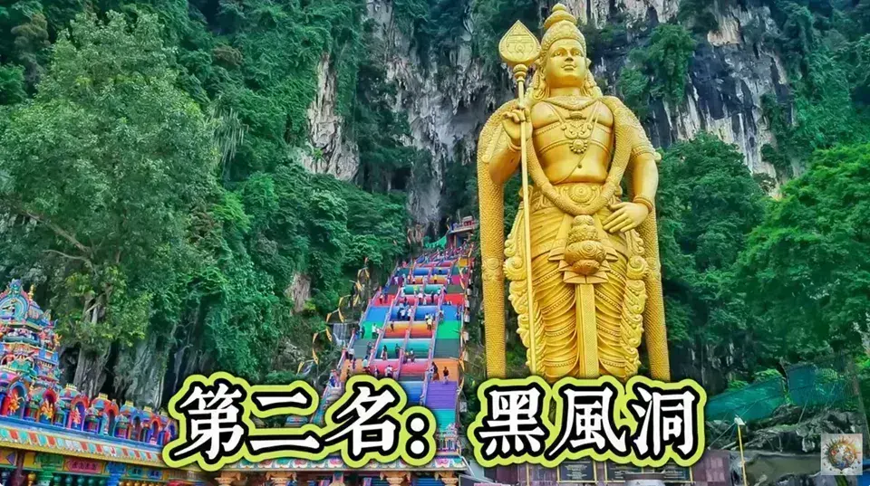 黑風洞是馬來西亞最重要的印度教朝聖地之一 [35:03],位於吉隆坡市郊13公里處,由三個主要洞穴組成。入口處有一尊高達42.7公尺的穆魯甘神像,色彩斑斕的272階階梯是其標誌性特色。它以壯觀的石灰岩洞穴、272個彩色階梯和30.5公尺高的金色室建陀神像而聞名 [35:08]。在一年一度的大寶森節期間,數十萬信徒聚集於此,營造出充滿活力的節日氣氛 [35:17]。