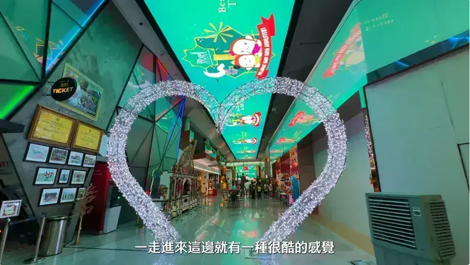 雙峰塔底下的購物中心,匯聚了許多國際品牌和美食,這座六層樓高的購物中心擁有各種品牌、IMAX電影院和一個美食廣場,提供多樣化的美食 [38:03]。