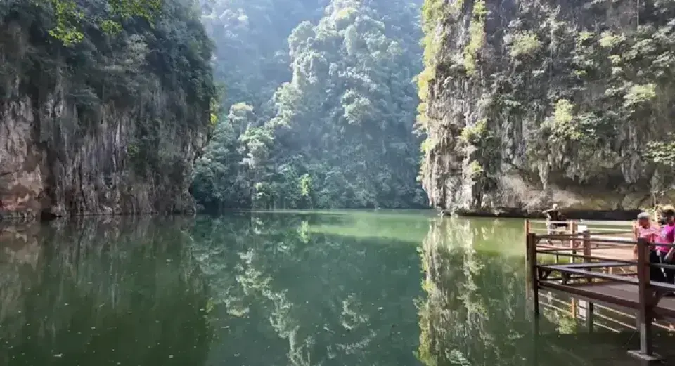 鏡湖位於怡保市郊,是個隱藏在舊礦場中的秘境。由於湖面平靜如鏡,能倒映出周圍高聳的石灰岩懸崖和熱帶樹林,因此得名。遊客需要穿過一條長長的黑暗隧道才能抵達,充滿探險感。這裡景色優美,是許多人拍照打卡的熱門地點。去前先查詢一下有沒有開。