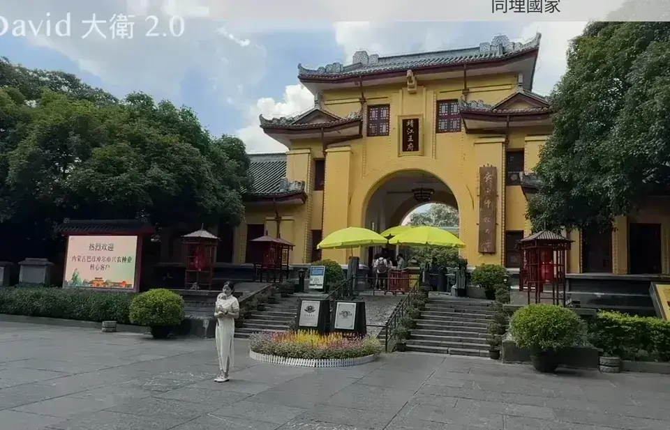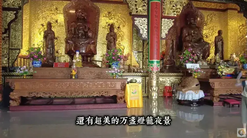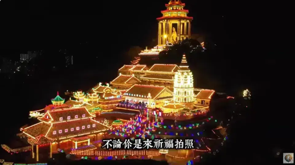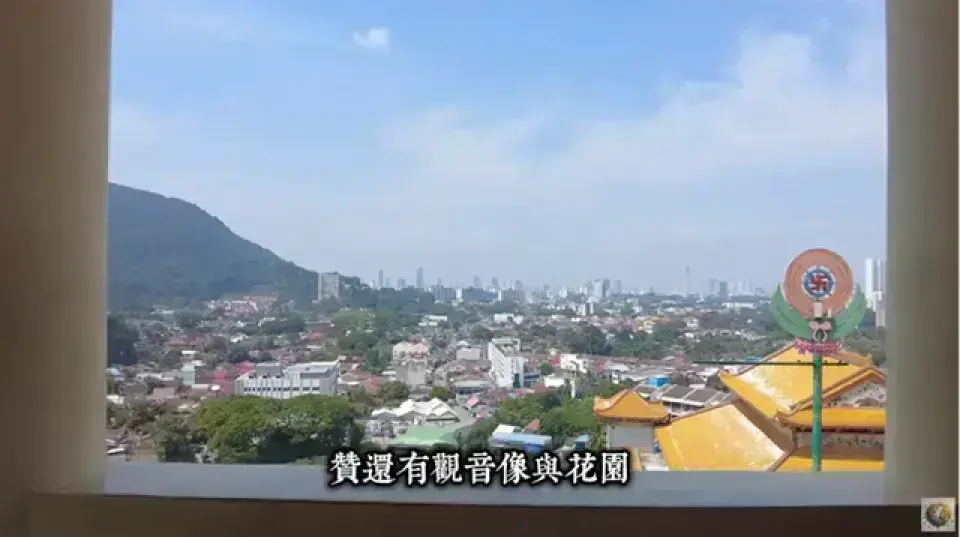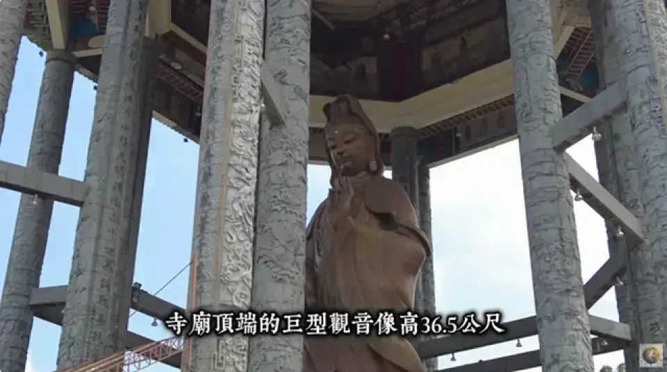 | 觀音像與花園 | 寺廟頂端有一座高36.5公尺的巨型觀音像,莊嚴宏偉,周圍環繞著花園和小池塘 [04:18]。可搭乘纜車前往參觀。 |