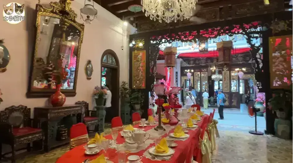 - 建築風格:結合中國傳統元素、西方殖民地風格與馬來特色,精緻的木雕、瓷磚、彩色玻璃。