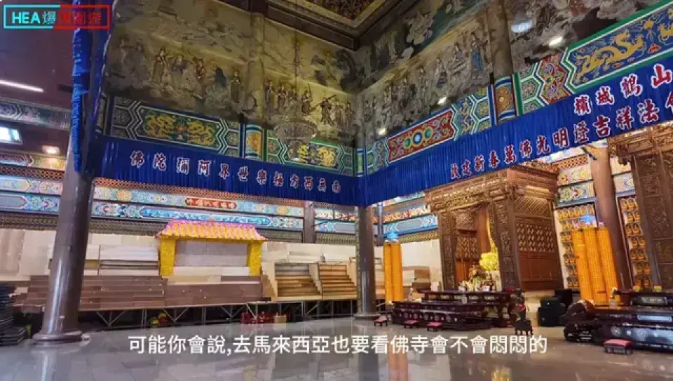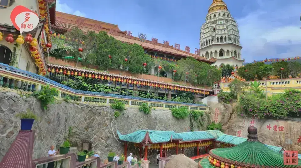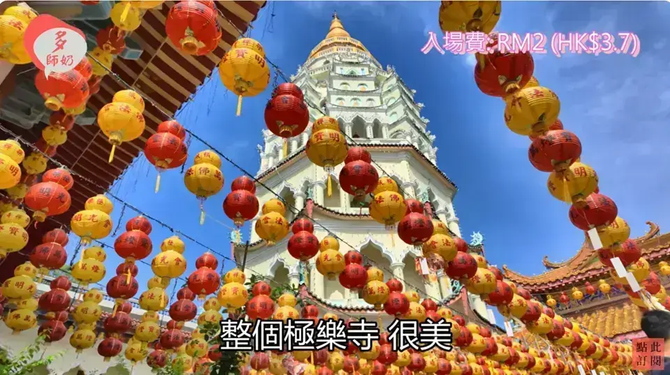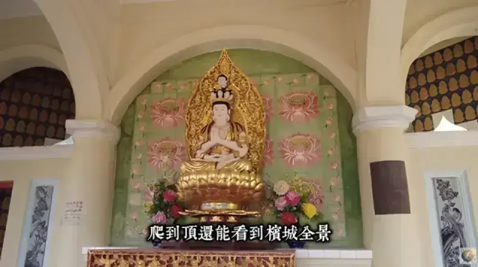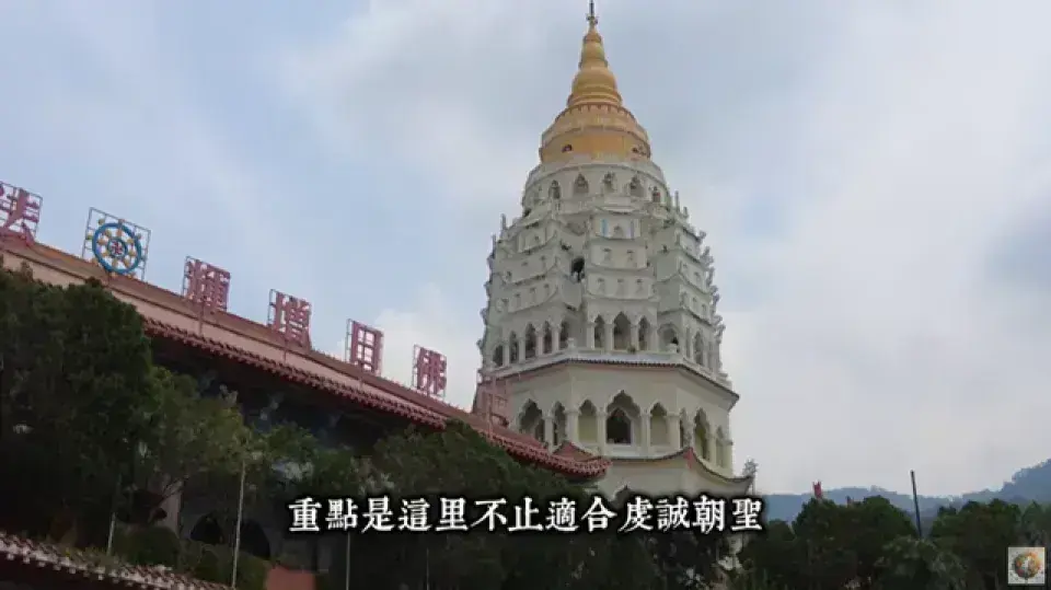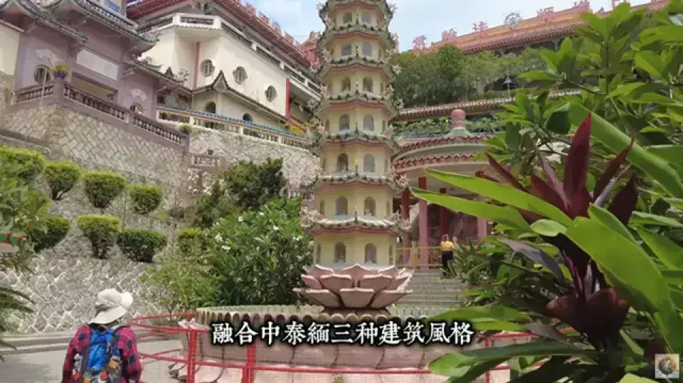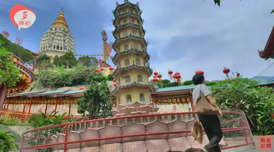 高達七層30公尺,融合了中式八角底、泰式塔身和緬甸塔頂 [03:54]。塔內有一萬多尊佛像,可以爬到塔頂俯瞰檳城景色 [04:03]。 |