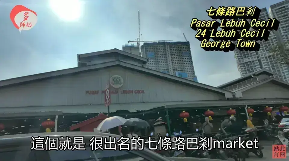 七條路巴剎又名土庫街市場 (Cecil Street Market),是喬治市最大的熟食中心之一,以其豐富多樣的檳城美食而聞名。這個市場是當地人享用早餐和午餐的熱門地點,遊客可以在這裡品嚐到各種地道小吃,如炒粿條、鴨肉粿條湯等。