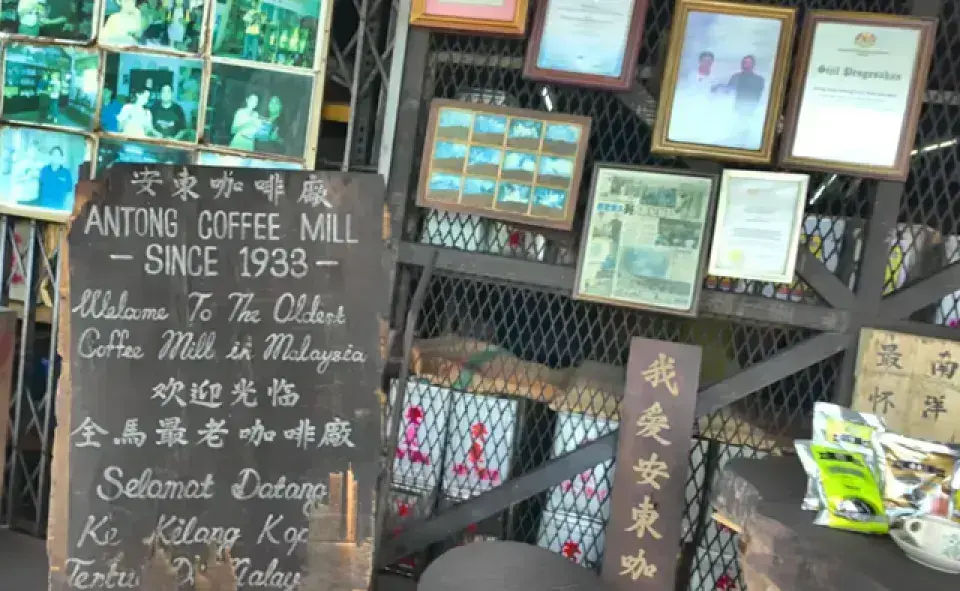 安東咖啡廠創立於 1933 年,是馬來西亞現存最古老的咖啡工廠,以傳統炭火手工烘焙而聞名。遊客可在工廠內參觀傳統咖啡製作過程,包括:炭火烘焙咖啡豆(最具特色),炭火烘焙咖啡豆(最具特色),試喝多款咖啡,例如招牌「安東白咖啡」,購買紀念禮盒、即溶咖啡、咖啡粉。