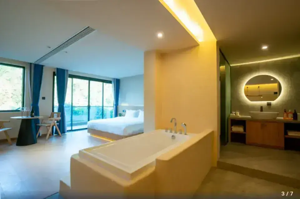 安顺龙宫栖缦坐落于贵州省安顺市黄果树旅游区,龙宫风景区入口处。栖缦是由80年代龙宫景区管委会大楼改造而成,打造60—100多平米的独立智能房间,房内院外配套设施齐全,超大的公共休闲区域:书吧,咖啡,酒吧,泳池,茶室,多功能厅,厨房,餐厅,包房,会议室,自助洗衣,免费停车场,充电宝,防晒用品,医药箱等便利服务。在山林环保之中,还开辟了一段长5KM的塑胶跑道,让您在休闲度假之时,享受运动带来的快感。