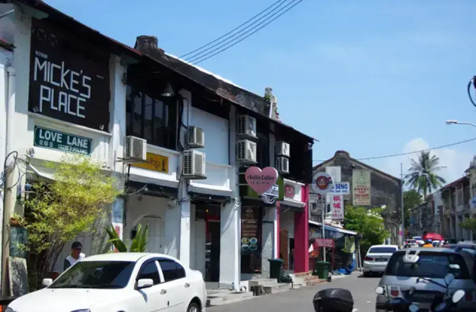 愛情巷是檳城喬治市的一條小巷,因其充滿歷史感的建築和悠閒氛圍而聞名。這裡聚集了許多背包客旅館、特色咖啡館、酒吧和餐廳,是年輕旅客喜歡探索的地方,是背包客們的聚集地,巷弄裡有許多平價旅館。這條巷子裡隨處可見檳城獨特的壁畫和鐵絲藝術,散發出文青的氣息。這裡的老建築物都被改造成充滿懷舊風格的精品店、咖啡店和酒吧。