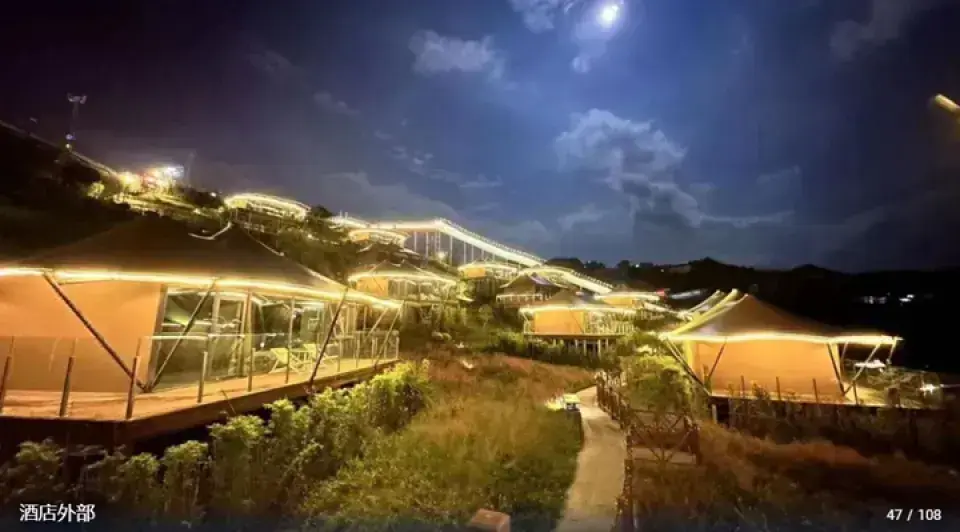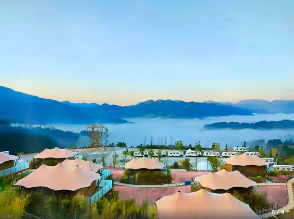 位於雷山西江鎮千戶苗寨西門遊客服務中心對面,酒店在景區外,沒有門票及出入的限制,地點在景區附近,距離苗寨遊客中心步行只需五分鐘,設計為奢華野外露營營地的感覺,在小山坡上佈置兩種房型,一種是豪華房車,一種是帳篷別墅。網上評論不差,食物一般,但附近有很多食肆。