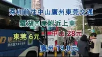 從深圳出發的長途巴士,有OK巴士,AA巴士,帥途巴士,粵出行,樣樣巴士,路徑同收費都相同,其中 OK巴士 的 app 包含預計落車時間,所以建議使用 OK巴士,單程收費 ¥28,可以從深圳乘搭至中山或東莞各地。