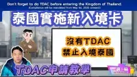 泰國數位入境咭 (Thailand Digital Arrival Card, TDAC) 於2025年5月1日起全面實施,取代傳統紙本表格。所有外籍旅客入境泰國前均須提交「泰國數位入境卡」,以下情況除外: