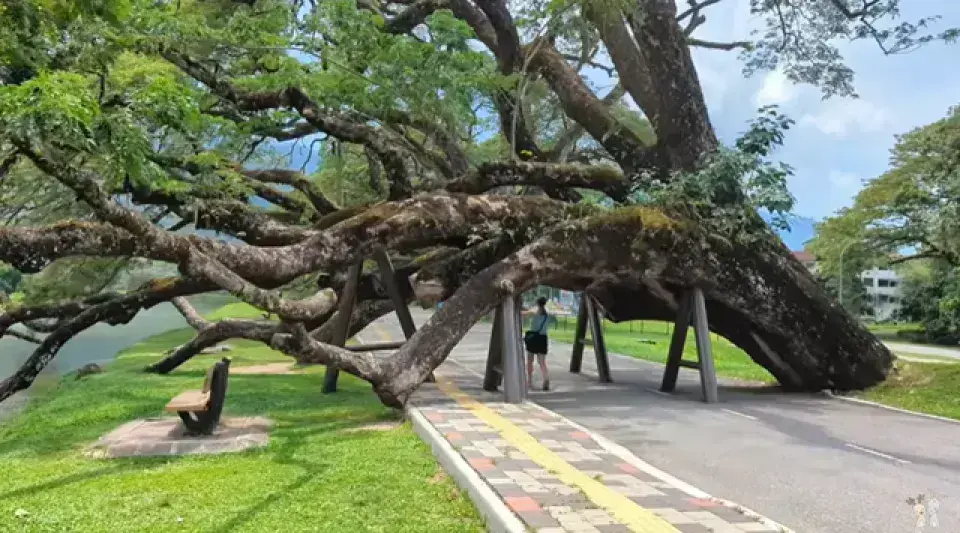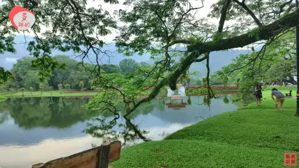 - 湖畔巨大 雨樹 (Rain Trees) ,枝幹橫伸至湖面,景緻壯觀
