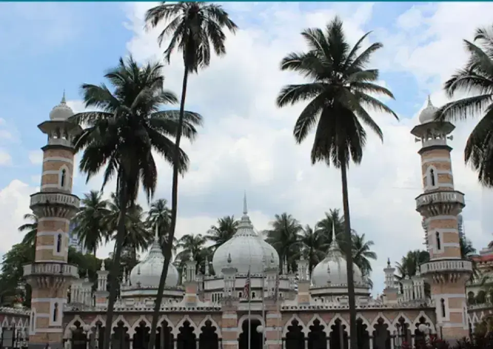 Masjid Jamek (蘇丹阿都沙末清真寺) 建於 1909 年,是吉隆坡最古老的清真寺之一,以摩爾式建築、尖拱與圓頂聞名。
