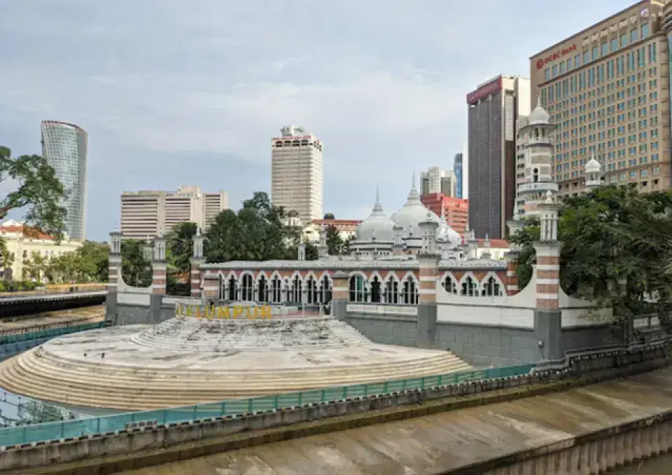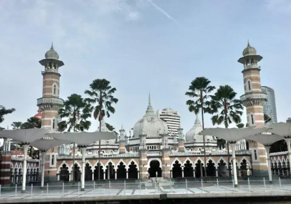 Sultan Abdul Samad Jamek Mosque = 吉隆坡最古老且最具標誌性的清真寺,融合摩爾式與印度-伊斯蘭建築風格,位於市中心河流交會處,是遊客必訪的人文景點之一。