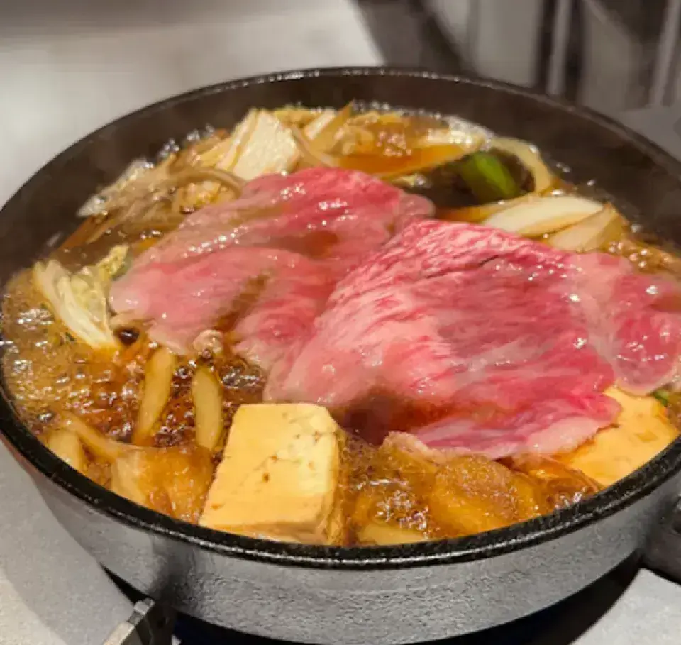 主打和牛壽喜燒的午市限定店,地點隱蔽、座位以吧檯為主,臨近法善寺與千日前商圈。餐點重心在高等級和牛,份量有不同級距可選。適合想在難波一帶吃到精緻壽喜燒的旅客。