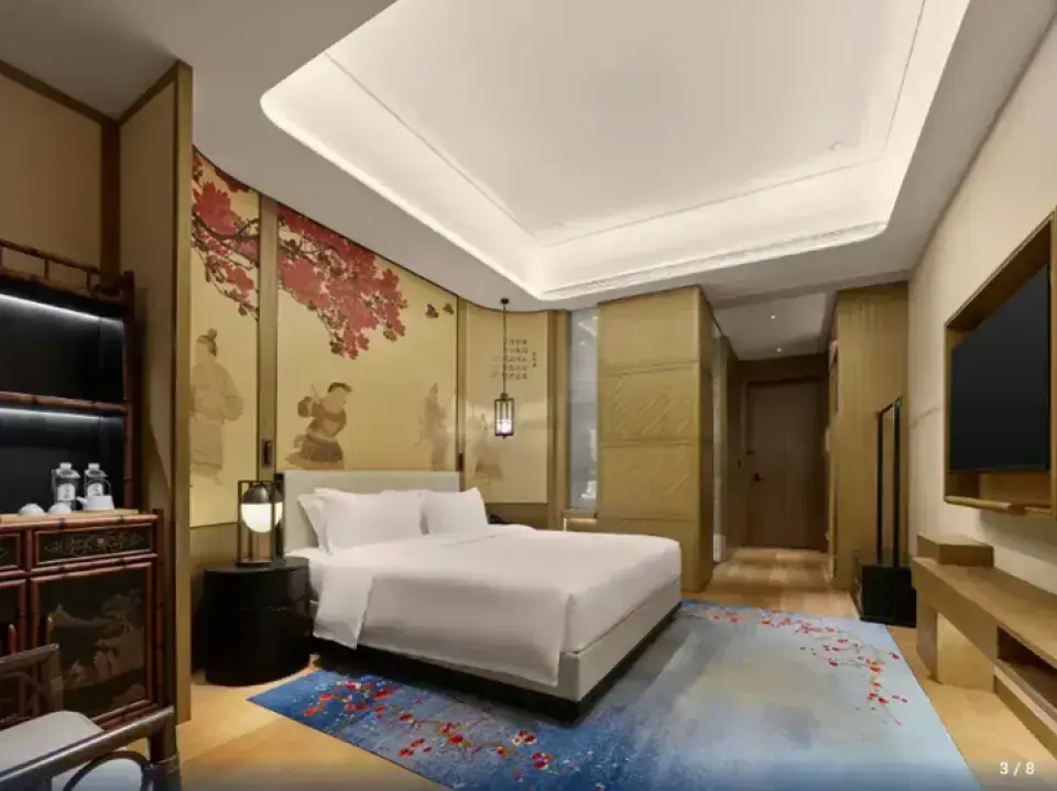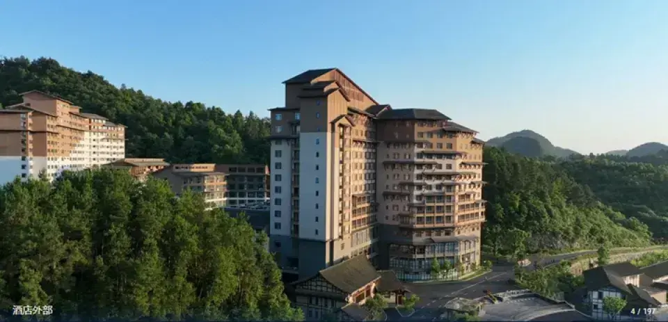 暮山酒店占地面积3785平方米,座落于乌江寨东南部的高山上,推窗即望山景,开阔自然,是一家拥有320余个客房的度假酒店,层高15层,目前是乌江寨体量大的酒店,适合团队与商务客人入住。暮山酒店大堂面积890平方米,宽敞明亮,装饰布置融入了当地的养蚕文化。暮山酒店高15层,3层为酒店全日制餐厅,有220个餐位和3个包厢。既是早餐厅,也可以根据客人需求提供自助餐。5层至15层为客房区域,327间客房中有154个标间、144个大床和28个套房。暮山酒店客房宽敞舒适,拉开纱帘,可看乌江寨山色空蒙,或者望远处山顶的廻龙塔。 在乌江寨,入住暮山酒店,看山色度时光,是度假休闲的不二之选。