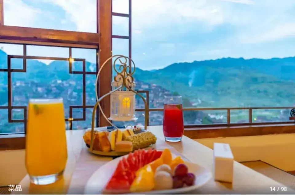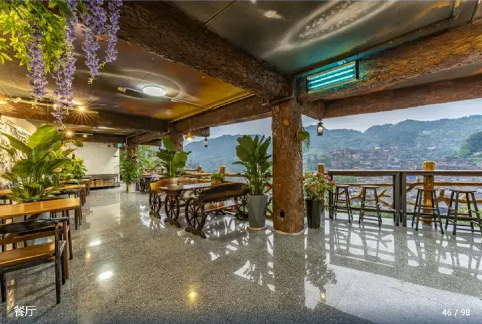 拥有【无敌观景】【独立阳台】;酒店每个区域每一间房都能直面西江全景,日出日落余晖一色,苗寨独特的风情画卷尽在眼底一览无遗。不论在酒店任何地方拍风景,人物,自拍都能拍出背景视角独特的照片,酒店配套设施非常完善:自助洗衣烘干,下午茶点。 酒店客房配有温馨情侣圆床浴缸房,亲子主题房,商务旅游休闲房,均【干湿分离】【智能马桶】蓝牙音响,高端洗浴品,儿童专用洗浴用品。 酒店位于西江苗寨地标观景台沿马路下行步行约3分钟,马路右手边,俯对西江的中心-表演场,酒店依山而建,拥有无敌观景位置和豪华的设备设施,夜幕慢慢降临在酒店的任何区域往外望去,整个苗寨的村村寨寨被一盏盏橙黄色的灯勾勒,如夜里星河。而任由您的灵魂在这里放开所有在星河里穿梭。