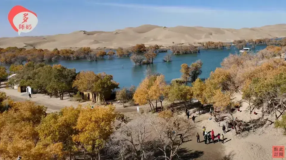 新疆的「葫蘆島」位於南疆巴音郭楞蒙古自治州尉犁縣,靠近塔里木河下游,是一個沙漠與湖泊、胡楊林共存的自然景區。這裡的湖泊因形狀像葫蘆而得名,四周有壯觀的沙丘和大片胡楊林,秋季時分景色尤為壯麗,被譽為大漠中的桃源仙境。具體位置是在新疆第二師33團,靠近218國道旁,屬於尉犁縣烏魯克鎮附近。這裡是攝影和觀賞胡楊林的熱門地點,特別是在每年十月中旬以後,胡楊林金黃一片,景色極為迷人。