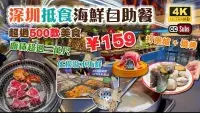海鮮自助餐 ¥159 任食兩個鐘 | 打邊爐 + 燒烤 | 任撈游水海鮮 | 面積超過三萬尺 | 超過500款美食 | 現切鮮牛肉、烤生蠔、刺身、榴槤甜品 | 啤酒、汽水、果汁任飲 | 東門美食