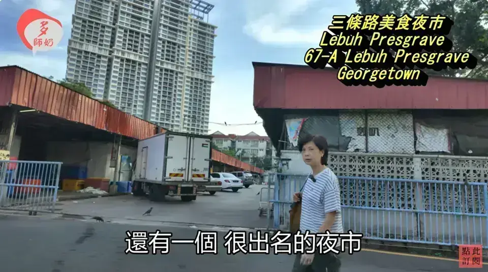 「三條路夜市」是位於三條路(Lebuh Presgrave)上的熟食中心,被當地人稱為「三條路夜市小販中心」。這裡在晚上非常熱鬧,是當地人下班後覓食的熱點。 |
