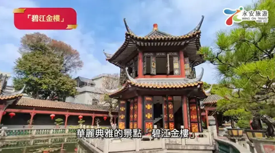 碧江金樓位於廣東省佛山市順德區碧江村,為明清時期蘇家早年所建的嶺南傳統書樓。因外牆貼有金箔裝飾而得名“金樓”,建築雄偉華麗且典雅尊貴。 |