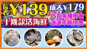 卡拉OK + 超豐盛蒸汽活海鮮 + 豐富自助區 任飲任食 游水活海鮮(蟹/鮑魚/蝦/蠔/貝) 凍海鮮+冷熱盤+鐵板燒+即煮粉麵+甜品+雪糕+生果+飲品 |